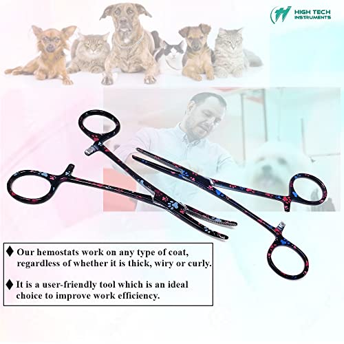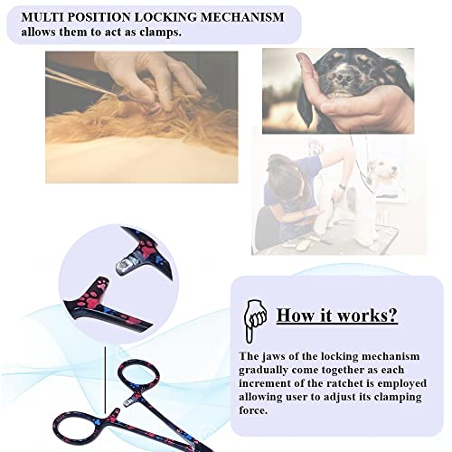 ✅ COLORFUL PATTERN DESIGN: Coated pattern provides a unique look. This tool will stand out from the other silver color tools. Durable and sturdy with the ability to be used in freshwater/ or saltwater. This reusable tool is easy to clean and disinfect. Ensure a crisp grooming experience everytime you use these hemostats with your Shih Tzu, Yorkie, Sphynx or Siamese.