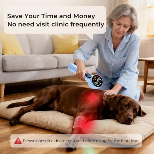 Pack List of Cold Laser Therapy for Dogs At Home: our red light therapy for dogs includes cold laser therapy device of pets+AC adapter with Type-c charging cable+eye protection glasses+user manual+magnetic cover+travel bag. For any questions about low-level laser therapy device, please message us, we’re committed a happy resolution before or after ordering. Pet laser therapy for cat horse is recommended to use for 15 minutes, 1-2 times a day for at least 4 weeks based on the physical condition
