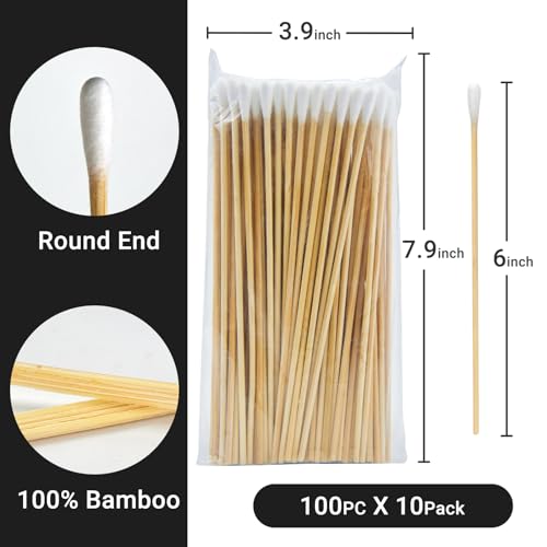 500/1000 Count 6” Long Round/Pointed Cotton Swabs Durable Stem, Lint- Free Gun Cleaning Swabs Pure Cotton Tips for Gun Maintenance, Makeup, Pet Care, Equipment (Detailed Work)