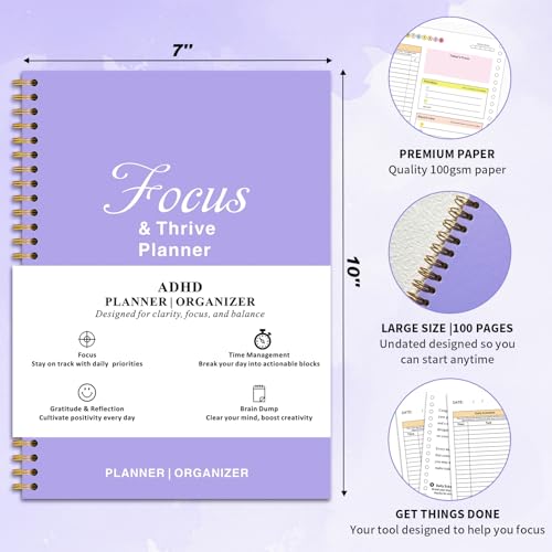🧠 The ADHD Planner That Actually Helps You Focus. Created with ADHD minds in mind, this isn’t your average to-do book. Our ADHD planner is a brain-friendly structure that clears mental clutter fast. Its minimalist, private cover keeps things discreet, while inside, every page is designed to help you reduce decision fatigue, stay on track, and create consistent routines without the burnout.