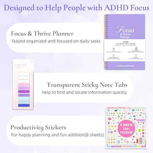 📅 13-Piece Productivity Toolkit to Organize Every Part of Life. This powerful set includes everything you need: Focus Planner, Pocket Planner, transparent sticky tabs, 530+ productivity stickers, 3 custom focus pens (with a sleek storage box), 52 therapy-style cards, chore chart, ADHD cleaning planner (magnetic), and a beautiful gift box. It’s more than a productivity planner—it’s a system built to simplify your life and amplify your strengths.