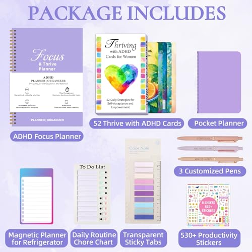 Specification: ADHD Tools Kit for Adult Women – 13-Piece Productivity & Focus Planner Set with Therapy Cards, ADHD Tools, Cleaning & Chore List, Pocket Planner, Stickers and Customized Pens
