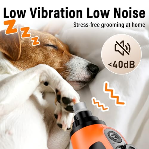 Casfuy Smart 6-Speed Dog Nail Grinder – 50% More Power Pet Nail Grinder with 2 LED Lights Quiet Rechargeable Electric Dog Nail Trimmers File Toenail Grinder for Large Medium Small Dogs & Cats(Orange)