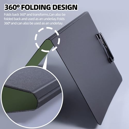 Easy to use: This foldable clipboard can be folded 360 degrees without deformation; Horizontal and vertical two clips facilitate multi-angle use, 0.07 inch thick board provide a smooth writing experience; This clipboard with pen slot in the upper left corner; Rounded edges are sanded, won’t hurt your hands