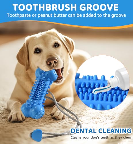 Dog Chew Toy for Aggressive Chewers, Durable Dental Cleaning Treat Toy, Food Dispensing Interactive Toy for Small, Medium & Large Dogs, Teeth Cleaning, Keep Busy, Tough Natural Rubber (Blue)