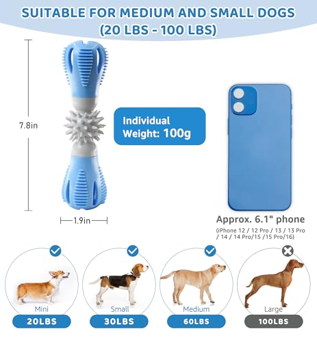 Specification: Durable Dog Chew Toy, Natural Rubber Treat Dispensing Puzzle Toy for Small & Medium Breeds – Interactive Teething, Training, and Dental Care Toy to Keep Dogs Engaged & Relieve Boredom (Blue)