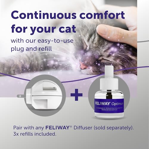 Specification: FELIWAY Optimum 3 x 30 Day Cat Calming Refills for Pheromone Diffuser, 3 x 48ml Value Pack – Helps Reduce Common Signs of Stress in Cats & Kittens, Enhanced Calming