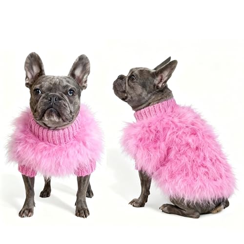 Fluffy Dog Sweater for Small Medium Dogs – Feather Look Knit Pet Outfit for Winter, Party, Photoshoot & Holiday Wear (Pink,M)