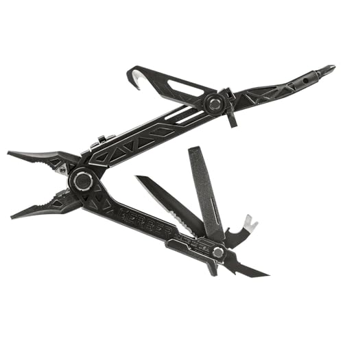 Gerber Gear multitool: Additionally, this multitool includes a 3.25″ plain edge blade, one-hand opening strap cutter, bit set, bottle opener, nail puller, pry bar, wire cutter, awl, and more