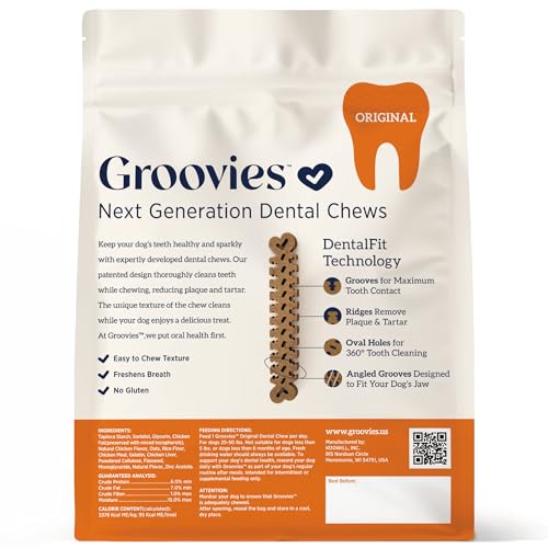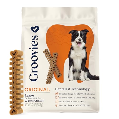 Specification: Groovies Flexible, Built to Last Dog Dental Chews, Contact-Cleaning Design Supporting Tartar Control & Fresh Breath, Oral Care Treats, USA Manufactured, Patented DentalFit Tech, Large Dogs, 27 Chews