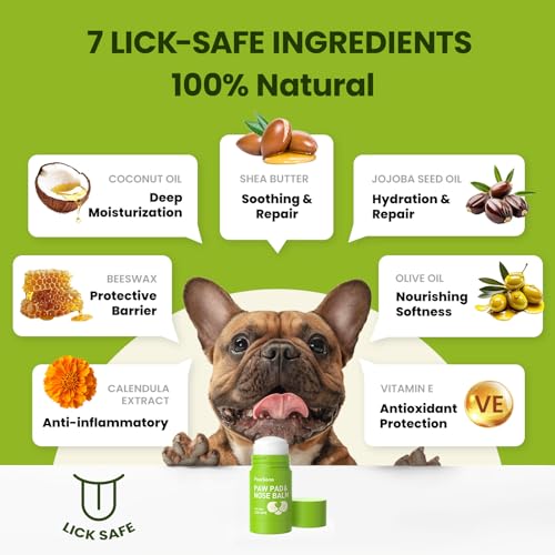 APPLY REGULARLY TO KEEP PAWS & NOSE HEALTHY:If your dog’s nose or paws are healthy, 2-3 times a week is enough for maintenance. In dry or extreme weather, apply twice daily or more often as needed to prevent dryness and cracking. Whether it’s a dry, chapped, and crusty nose or rough, cracked paw pads, this balm delivers fast, visible results. Made with pet-safe ingredients, our dog paw moisturizer is completely safe even if licked. Keep your dog’s paws and nose soft, moisturized, and comfortable