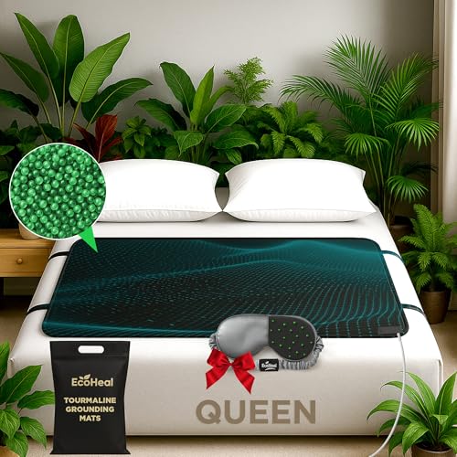 Luxury Tourmaline Grounding Mat Queen 59” x 27” for Bed & Desk – Conductive PU Leather Surface, Quality Certified, Includes Silver Sleep Mask & 15ft Cord