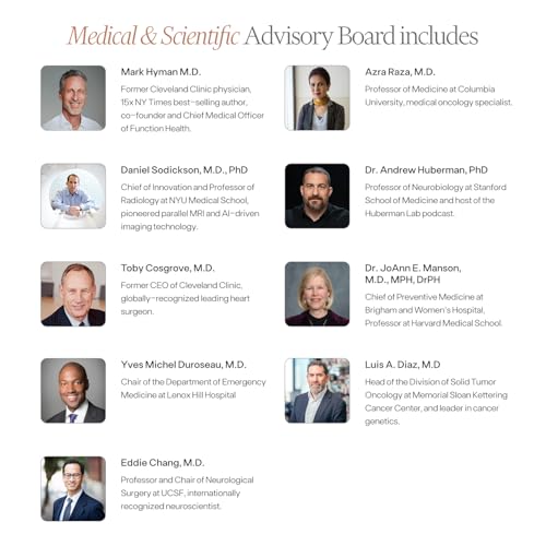160+ lab tests annually across body systems, including heart, hormones, thyroid, liver, kidneys, nutrients, inflammation, and more