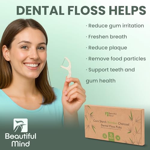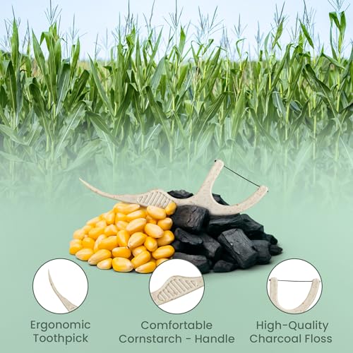 Specification: Natural Dental Floss Picks 75 Pack – Organic Biodegradable Floss Sticks with Strong Bamboo Charcoal Thread & Vegan Cornstarch Handle – No Plastics, No Artificial Flavours – Kraft Paper Box