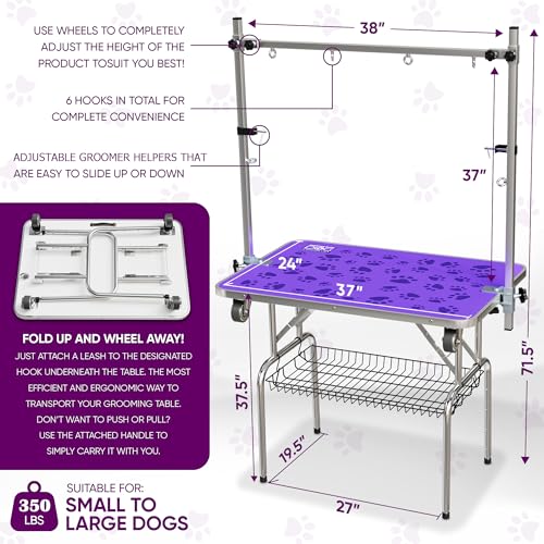 Specification: Prestige Elite 37” Dog Grooming Table, Dog Grooming Table for Dogs at Home – Adjustable Heights Pet Grooming Table, Dog Grooming Supplies & 300lbs Capacity – Portable Dog Washing Station for Home