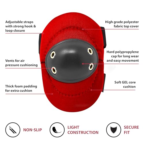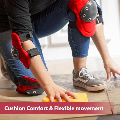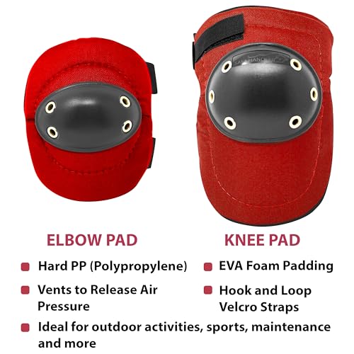 Specification: Safe Handler Tough Cap Knee Pads and Elbow Pads – Foam Padding Protective Gear with Adjustable Straps, Durable Comfort for Work, Gardening, Flooring, Cleaning, Skating & More, Red