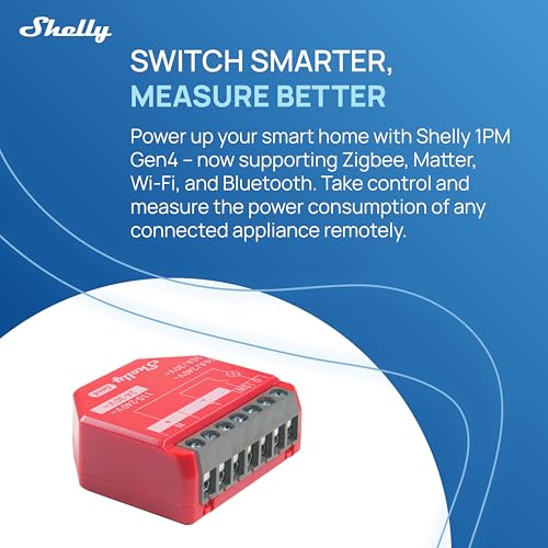 Specification: Shelly 1PM Gen4 | Wi-Fi, Zigbee, Matter Smart Relay Switch with Power Metering, 1-Channel 16A | Home Automation | Alexa, SmartThings, Google Home, Apple HomeKit Compatible | iOS Android App (2 Pack)