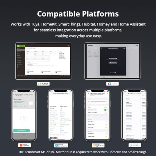 Broad Compatibility for Enhanced Control: Integrates seamlessly with Homekit and SmartThings via the Zemismart M1 or M6 Matter Zigbee Gateway, expanding device compatibility and providing powerful control options for your smart home.