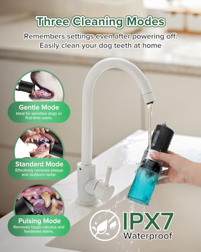 Specification: YABIFE Non-Vibrating Ultrasonic Tooth Cleaner for Dogs with Water Cooling System. Dog Plaque and Starter Remover, with Dental Care Kit and Teeth Brush, 3 Cleaning Modes with Lighting