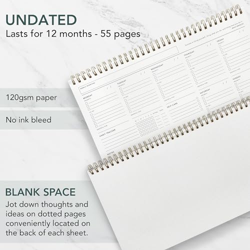 ✍️ UNDATED WEEKLY PLANNER: Begin your journey of enhanced wellbeing and productivity at any point in the year with our undated weekly planner, your ultimate dashboard desk pad. No more wasted pages – take control of your schedule on your terms.